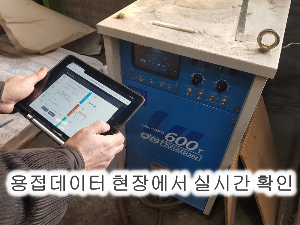 On-site photo of welding data being checked in real time